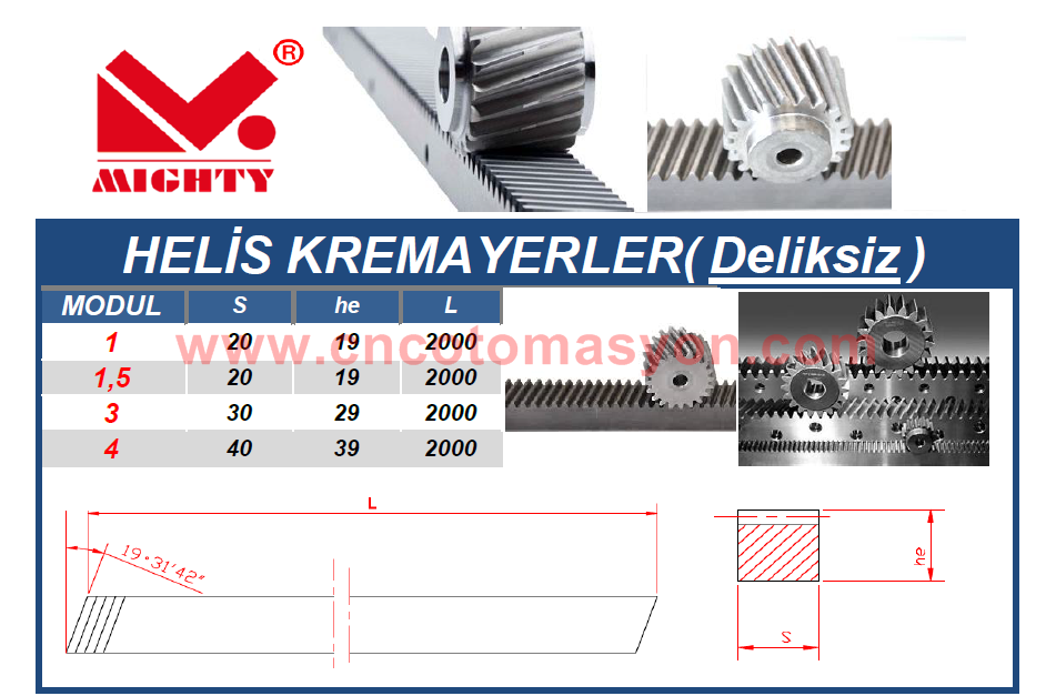 4 Modül Helis Kremayer Dişli (deliksiz) s:40 mm he:39 mm L:2 metre