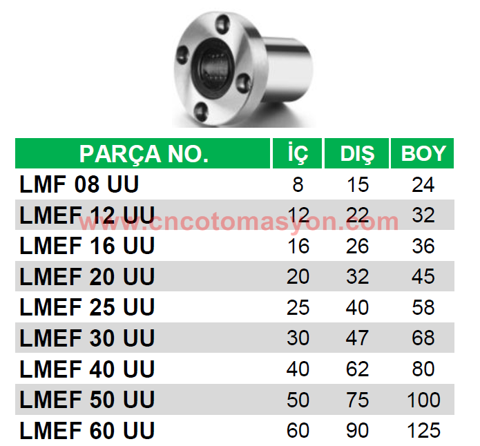 LMEF 10 UU Lineer Rulman d:10 mm D: mm L: mm